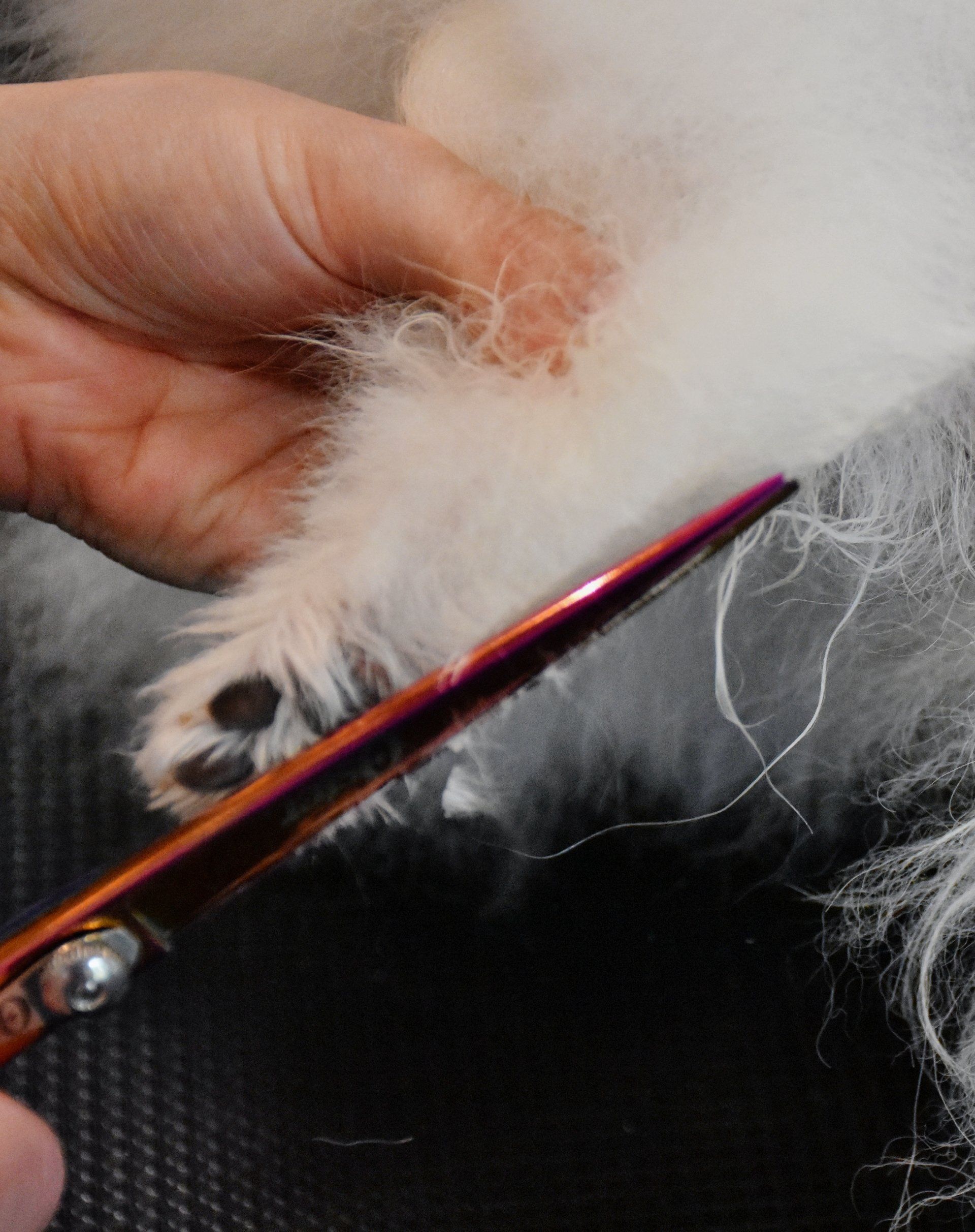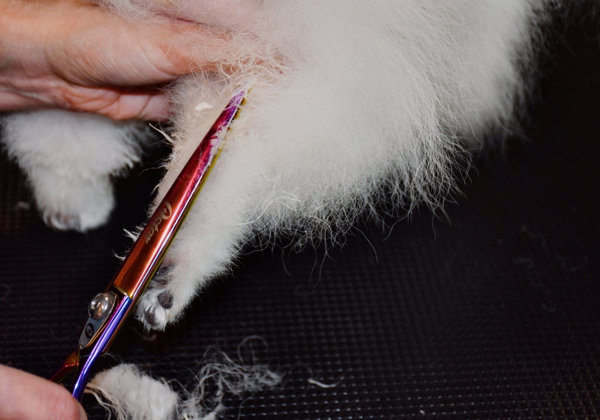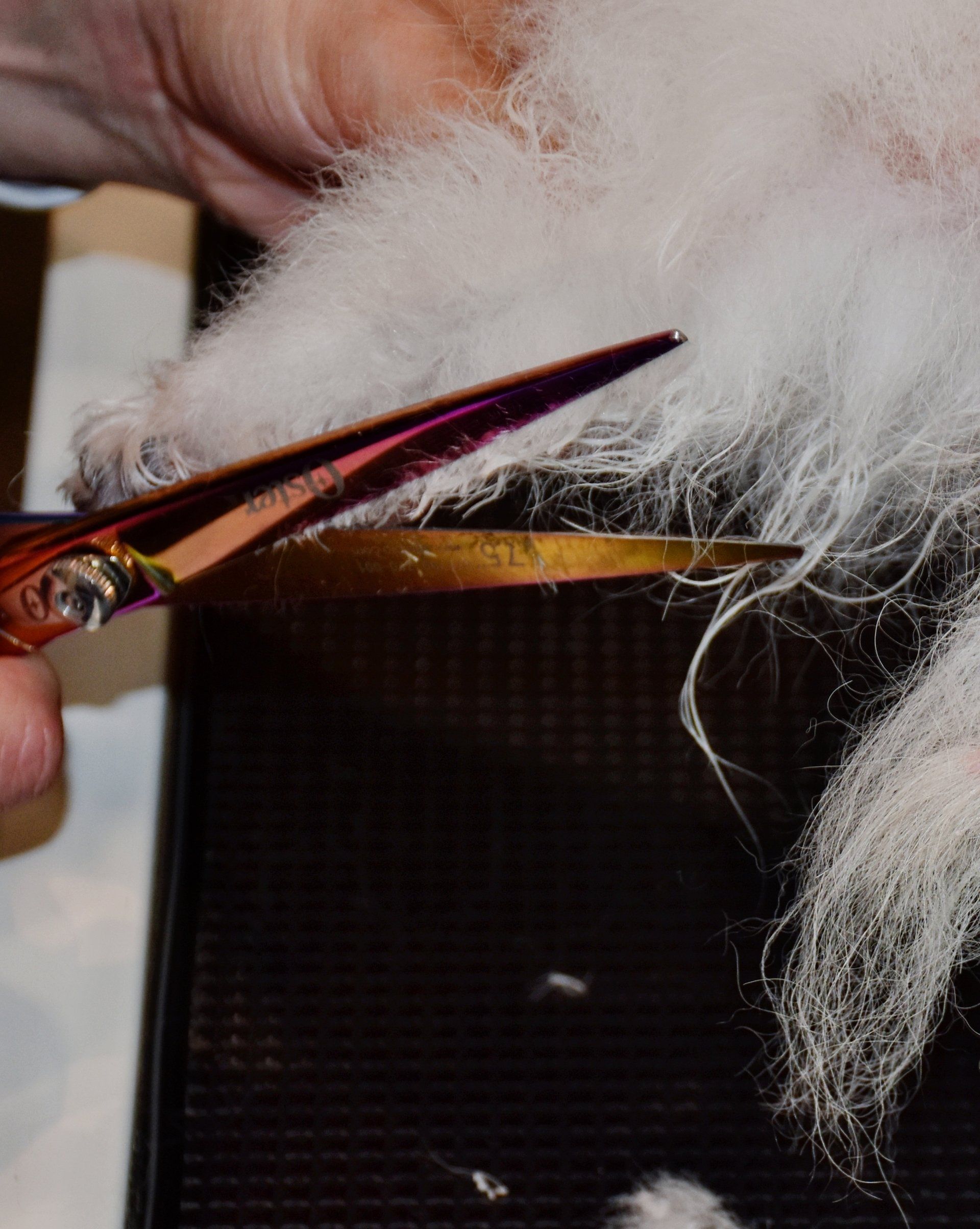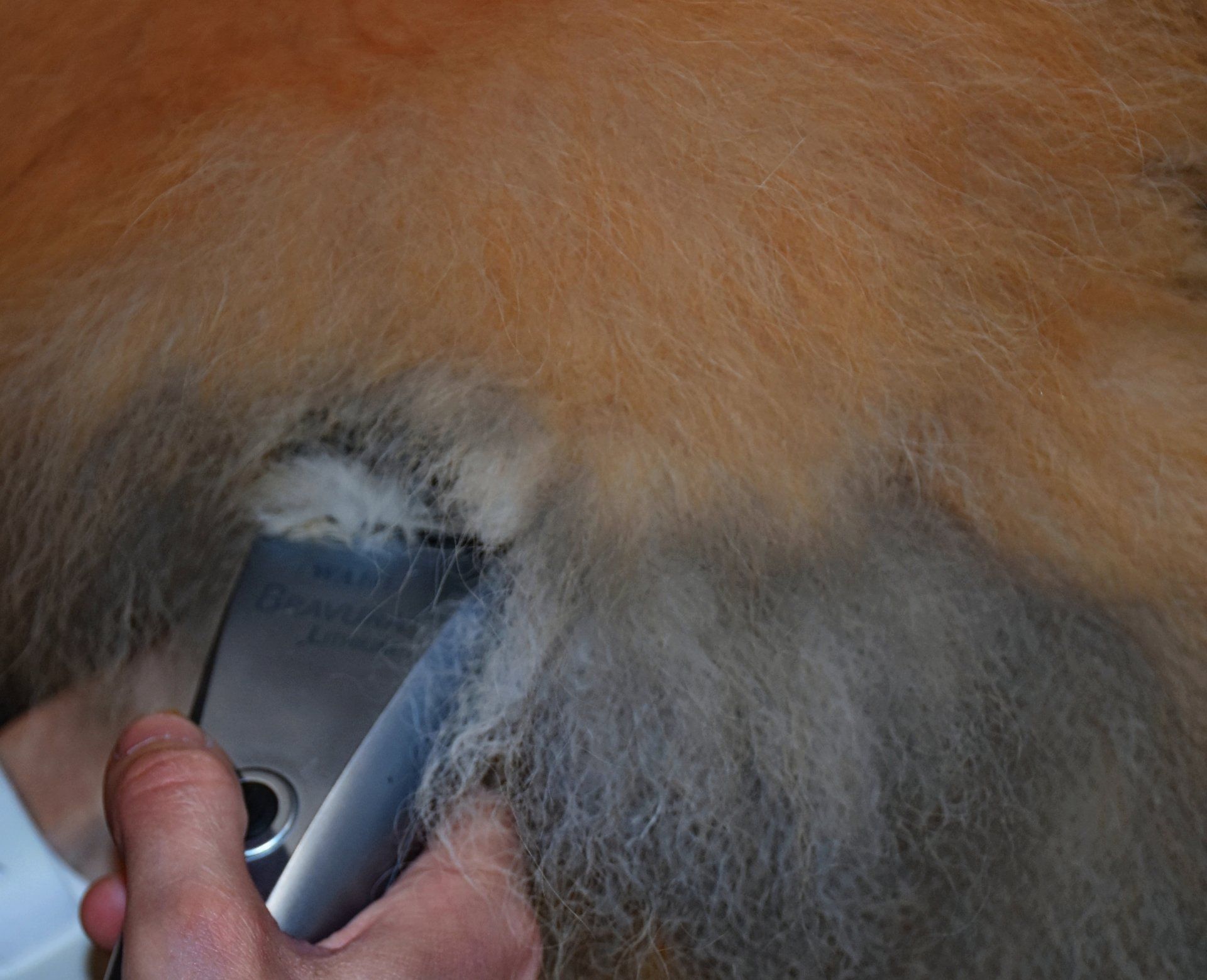Das Schneiden des Fells mit einer Schermaschine und/oder mit einer Schere