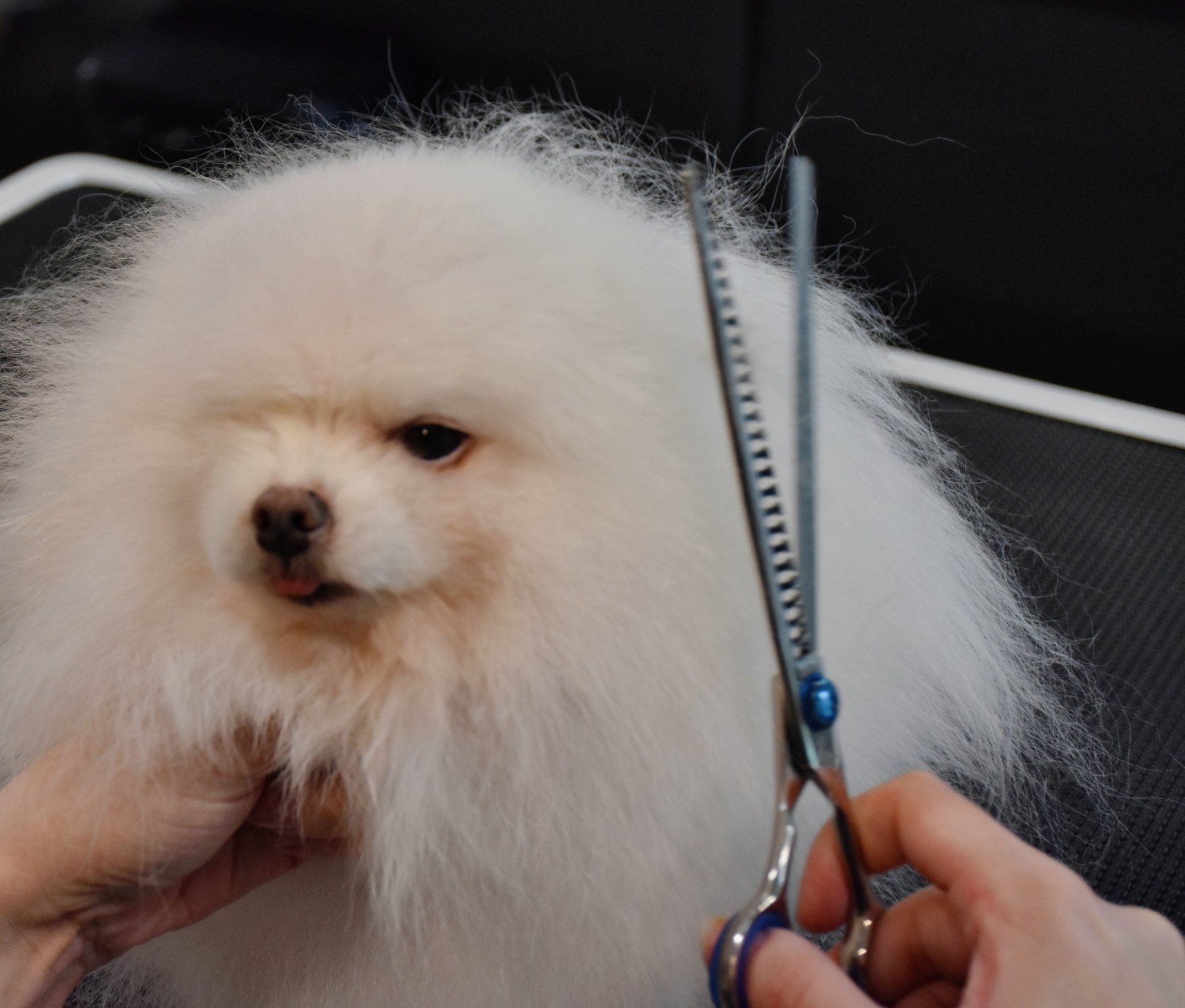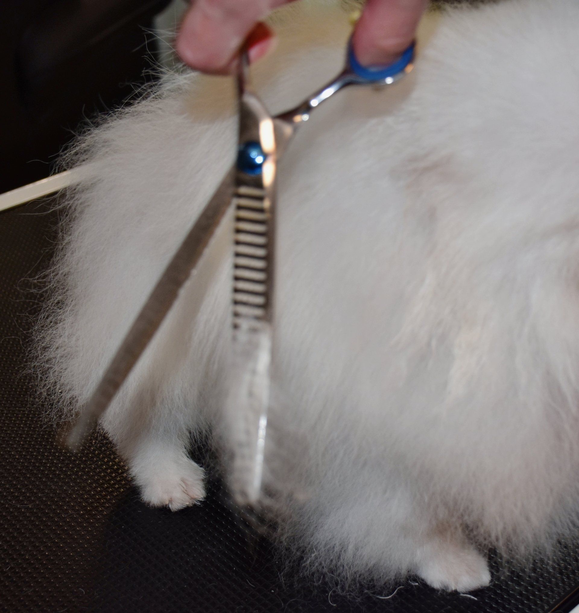 Wir besitzen sehr viele verschiedene Scheren in verschiedenen Längen und Ausführungen. Dazu gehören Gerade, Gebogene, Effilier-, Modellier-, Pfoten- und Gesichtsscheren. Für jeden Bereich Ihres Hundes haben wir die passende Schere im Salon. Egal ob Ihr Hund klein, mittel oder groß ist.